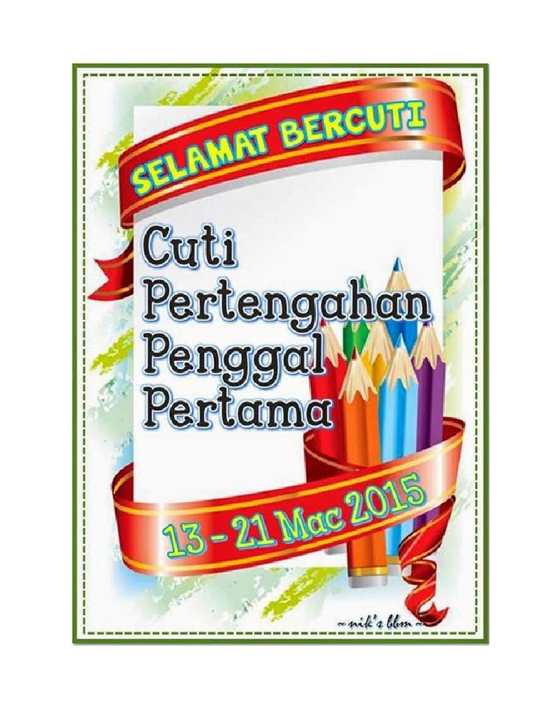 Makluman cuti pertengahan penggal 1 sk bukit gelugor transformasi sekolah 2025 2 0 facebook. 18 Mac 2017 Sabtu - 26 Mac 2017 Ahad TEMPOH. Cuti Pertengahan Penggal 2.